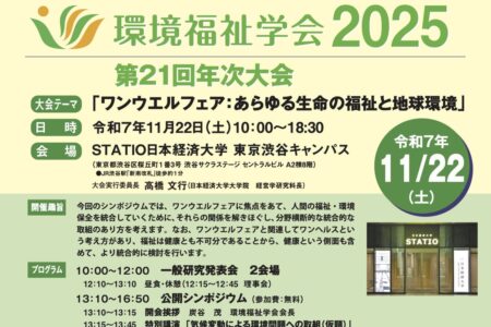 白井信雄教授が環境福祉学会が主催する公開シンポジウムでコーディネーターを務めます