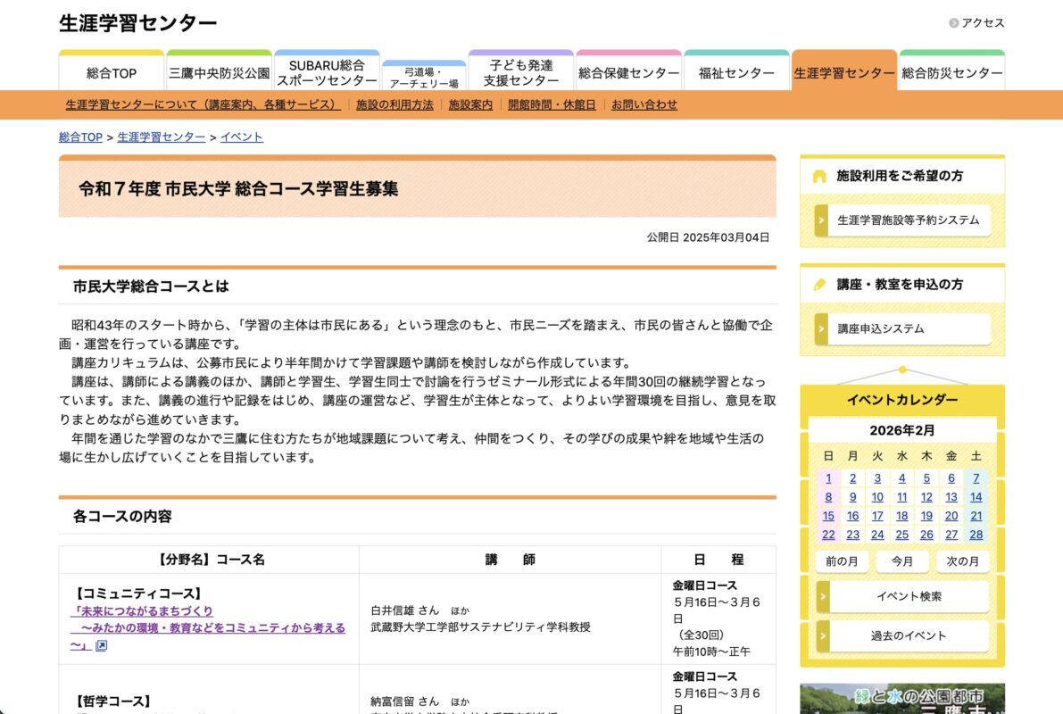三鷹市民大学とはなんでしょうか?三鷹市民大学のウェブサイトから引用しました。