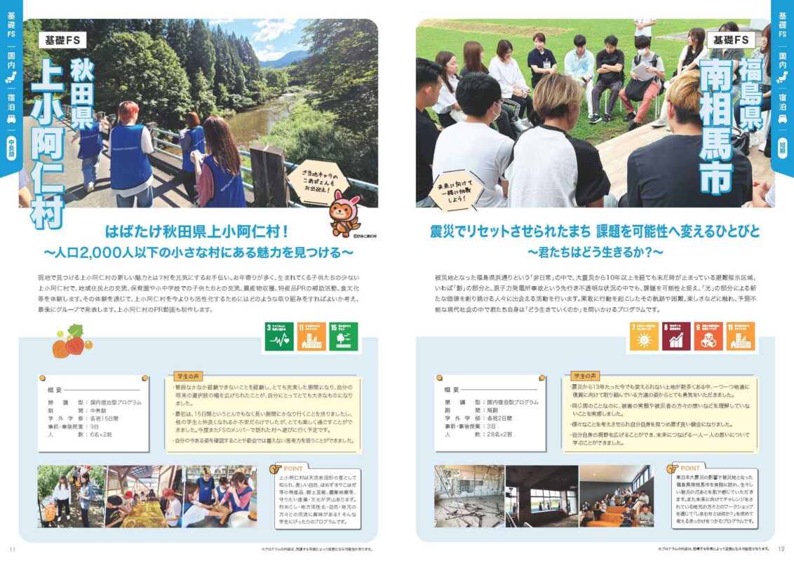 基礎FSは、全ての1年生*を対象とした必修科目です。夏期休暇期間にキャンパスの外へ飛び出し、学内での学びや学生間の交流にとどまらず、学外のさまざまな地域・社会・世界との深い交流を通じて、新しい価値観を育み、視野を広げる大学独自のプログラムです。