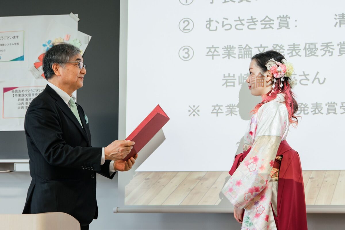 学長賞とは、環境システム学科(現サステナビリティ学科)でGPA(成績)上位の学生に授与される賞です。